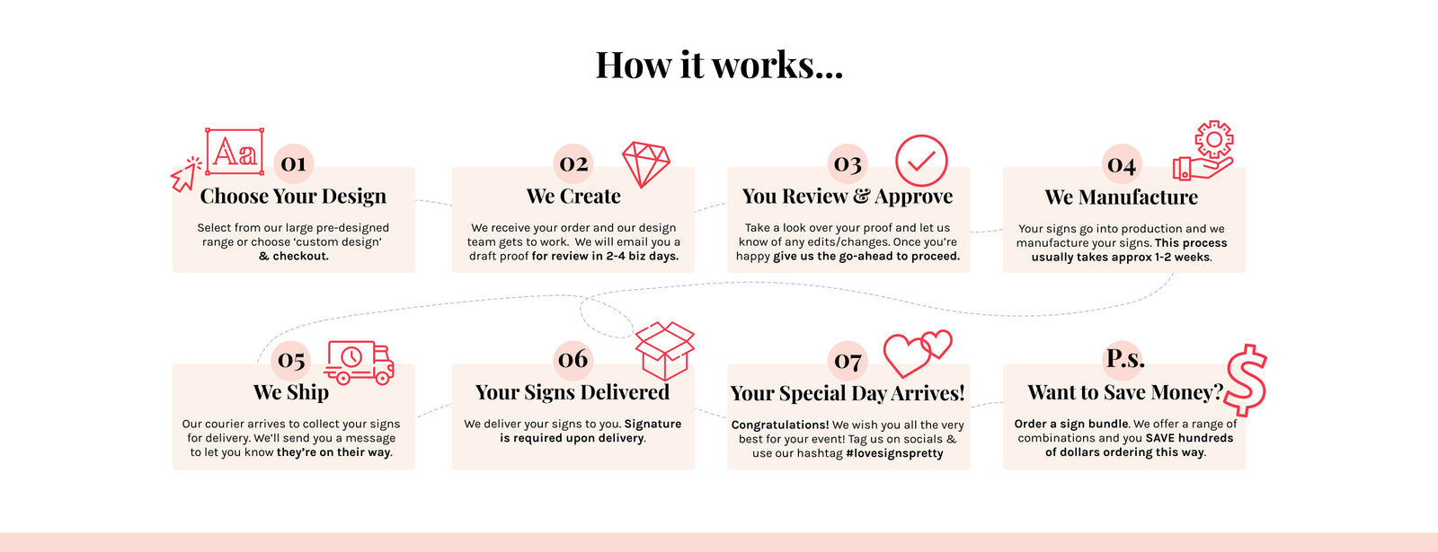 Our specially curated collection features sign packages that combine our favourite items to create only the best of the best signage for your big day!